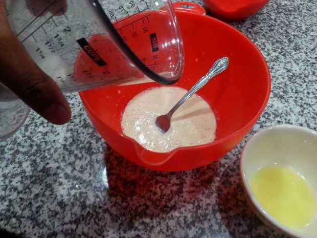 Añadir el azúcar a la mezcla de levadura, que por cierto debe han espuma para arriba un poco por ahora. Si no ha mostrado ningún cambio, usted debe probablemente empezar esa parte.