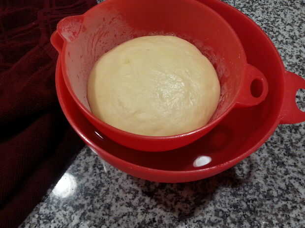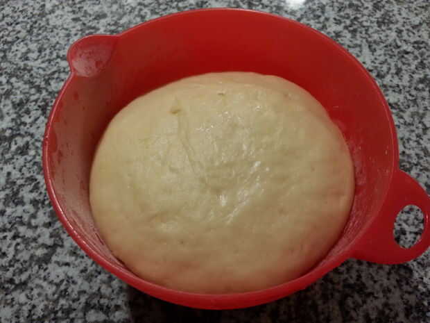 Punta: Si usted se olvidó de cubrir con un paño húmedo y seca en la parte superior, sólo mojar la parte superior, esperar unos minutos, luego tomar la masa y amasar un poco.