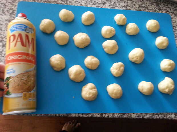 Una vez que ha aumentado su masa, sacar y amasar en una bola. A continuación, separar la masa en 20 bolas de 1 pulgada.