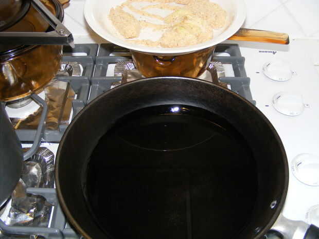 Coloque suavemente los meeses en el aceite caliente. Les dan un montón de espacio.