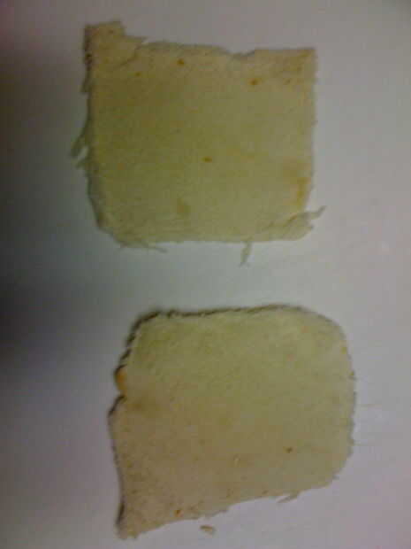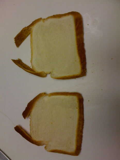 Bueno ahora a la fabricación, usted rodar primero el pan con el rodillo abajo de plano y luego corta la corteza en los lados, o sólo podría empujarlo hacia abajo no como sanitario aunque. Sólo necesitas una rodaja de pan. Yo estaba haciendo dos simultáneamente.