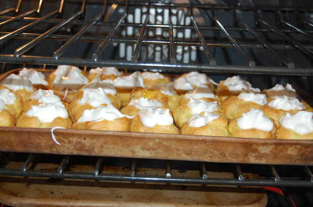 Ir su bandeja de pasteles en un horno de 350 ° F durante unos 15 minutos o hasta marrón en la parte superior. Después de ellos, les permiten relajarse. Son mucho mejor frío.
