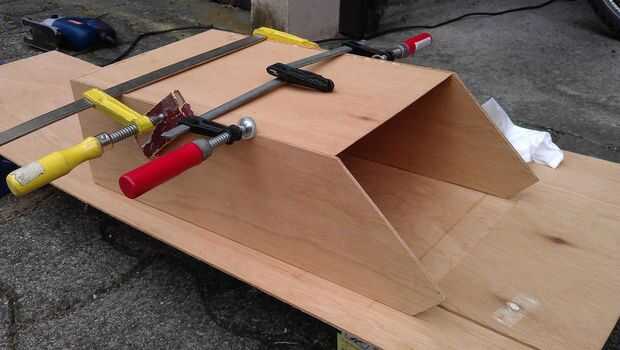 Hicimos un chasis de madera porque la madera es barata y fácil de transformar. Hemos utilizado madera contrachapada de 5 mm. Este chasis deben ser muy grandes si desea establecer las baterías, motor y electrónica y suspensiones, ruedas y torreta en el exterior; no hay ningún tamaño máximo pero lo que es demasiado grande puede ser un problema para el centro de gravedad del robot cuando sube escaleras.