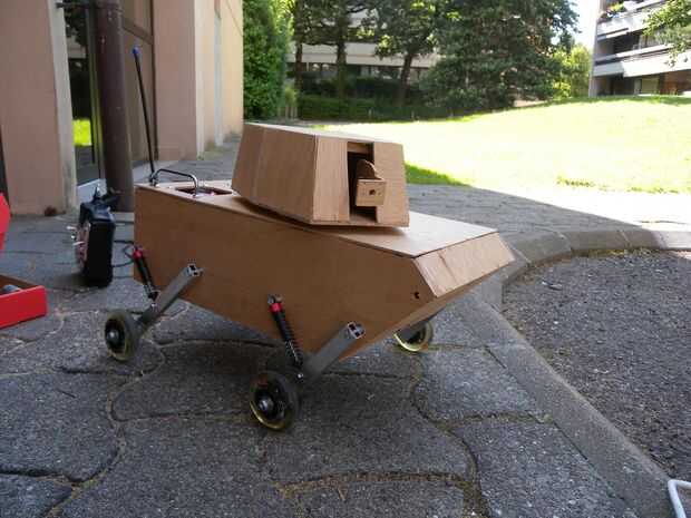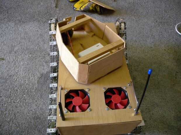 Esta fase es relativamente corta. La torreta se fija el Servo a la placa superior del chasis, este lugar también está equipado con 2 ventiladores, antenas, y 2 asas para un fácil acceso al interior del chasis. Las suspensiones se atornillan las placas laterales (tenga cuidado de la longitud de las pistas). Los temas se plantean en las ruedas de energía; los motores se combinan con un motorreductor para generar más energía.