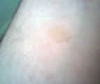En el ejemplo he utilizado mi antebrazo ya que era más fácil fotografiar. No necesita mucho a sólo un punto un poco más pequeño y una moneda de diez centavos. Usted querrá hacer esto dos veces, una para cada punción espaciadas por consiguiente.