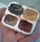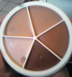 Ahora es el momento para aplicar el maquillaje. Comencé utilizando una rueda de color del tatuaje de Mehron que tiene 5 diferentes piel color sombras en él.