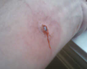 El efecto general resultado bastante bueno. Por supuesto mi aplicación tiene sólo una puntura herida y una mordida de vampiro real tendría dos. Pero eso de "ok" porque sólo se puede repetir el proceso para la segunda.