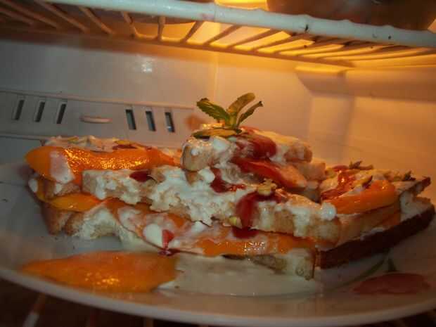 Hacer sandwiches con rebanadas de mango.