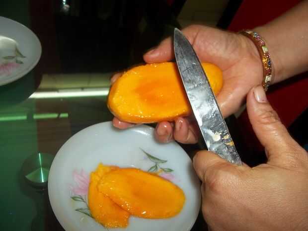 Cortar y hacer rebanadas de mango.