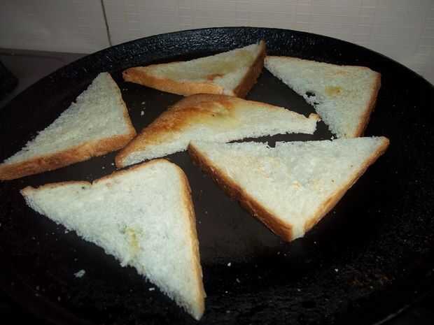 Cortar las rebanadas en dos como se muestra en la imagen.