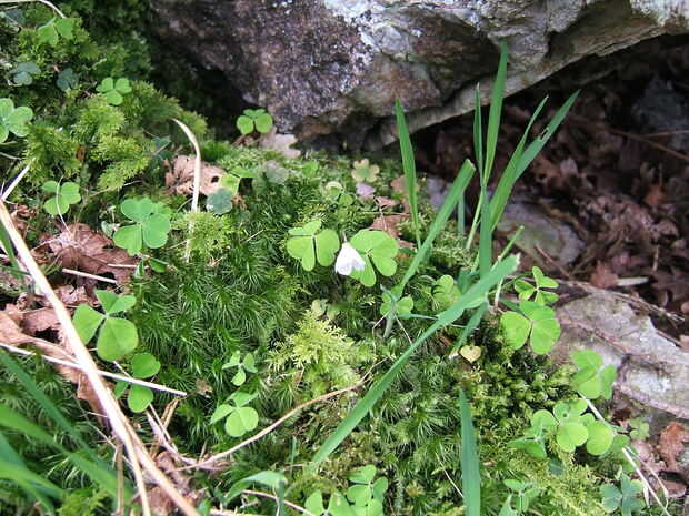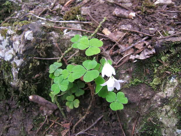 Es una planta bonita que se encuentra generalmente en el bosque (de ahí el nombre!). Crece bajo abajo en los bancos y entre rocas, como moss y a menudo entre lo. Hay tres hojas en forma de corazón en cada tallo y pequeñas flores blancas.
