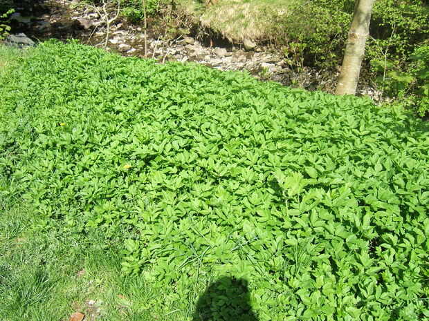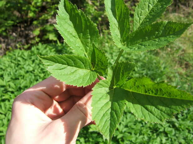 Crece hasta un pie o tan alto en una Misa juntos y es fácil de reconocer en primer lugar porque se ve como el anciano y en segundo lugar mira el tallo, es triangular.