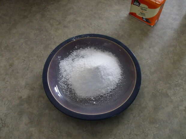 Agregar 10% alumbre a hilado peso y 5% cremor tártaro a la olla.