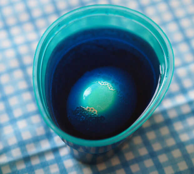 este año, mis hijos y yo teñido nuestros huevos de Pascua con comida para colorear y espuma de crema de afeitar.Fue desordenado, divertido, y mis dos más viejo ya me dijeron que me querían volver a hacerlo.El proceso fue más fácil de lo que esperaba,