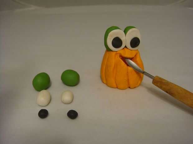 Cuerpo de calabaza de sapo: rodillo arcilla naranja en forma de bola, entonces marcar la bola como una calabaza con una herramienta de arcilla.