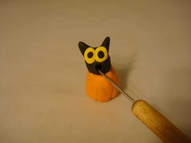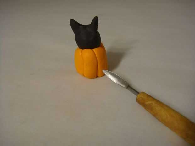 Cuerpo de calabaza del palo: rodar un pequeño óvalo naranja y las líneas de puntuación calabaza en él con una herramienta de arcilla.