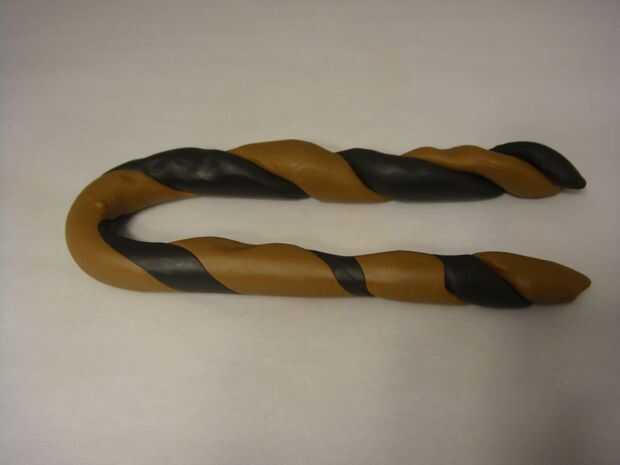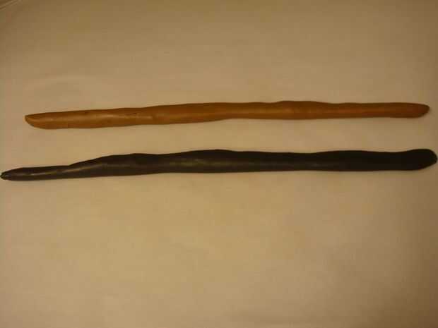 Rodillo 1 larga serpiente de barro negro y 1 larga serpiente de barro marrón.
