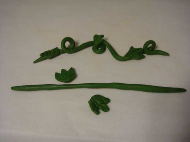 Hornear las vides y las hojas como se indica en el paquete de la arcilla.