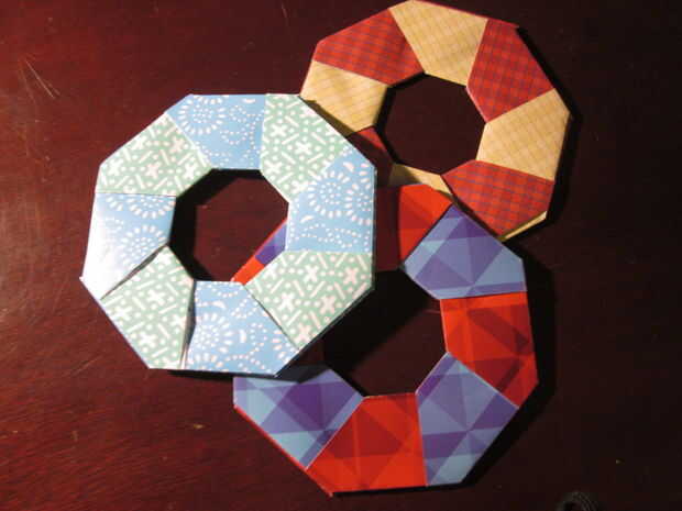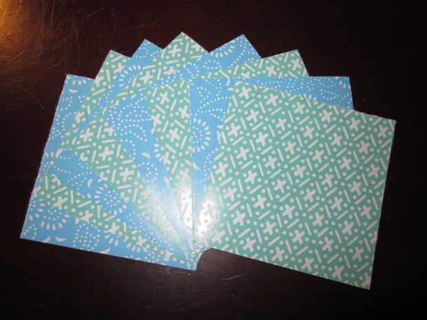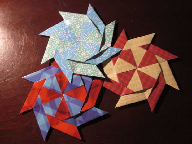 Utilicé dos hojas de papel de origami y había dividido en cuatro partes. Probablemente sería mejor si su planificación al hacer dos colores estrella como yo.