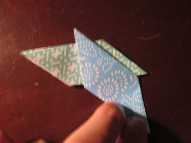 Paso 1:Necesita 1 pedazo de papel cuadrado de un color, 4 pedazos de un papel cuadrado de colores diferentes y 4 pedazos de papel de otro colorPaso 2: Un color de papel del doblez sobre aquíPaso 3: Dale la vueltaPaso 4: Hacer el pliegue a lo largo de