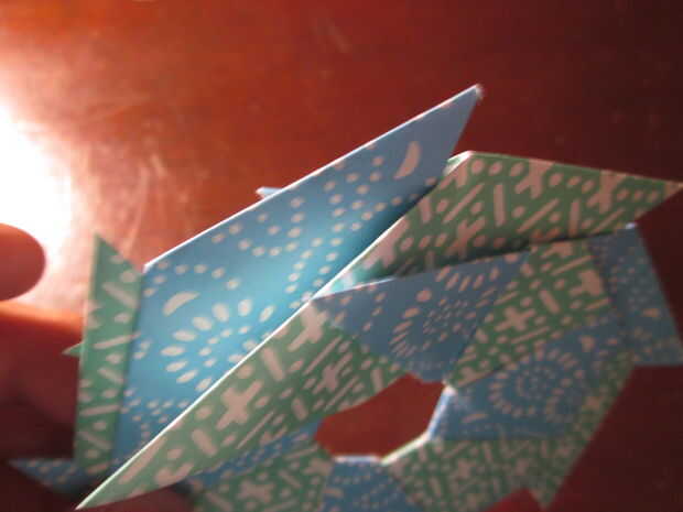 Paso 1:Necesita 1 pedazo de papel cuadrado de un color, 4 pedazos de un papel cuadrado de colores diferentes y 4 pedazos de papel de otro colorPaso 2: Un color de papel del doblez sobre aquíPaso 3: Dale la vueltaPaso 4: Hacer el pliegue a lo largo de