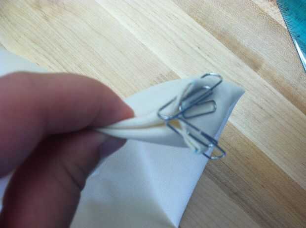 Tomar la parte inferior de la esquina de la bolsa y doblar los lados para crear el ancho de la bolsa. Hice mío alrededor de una pulgada pero esto puede modificarse en base a las necesidades de la persona que utiliza la bolsa.