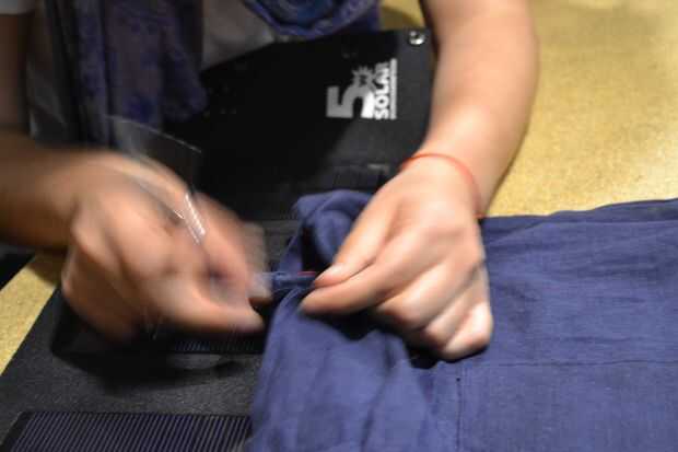 Como vemos en la tercer foto, sacaremos el fondo de la bolsa y lo deshilaremos/descoseremos por la costura se encuentra en la tela superior.