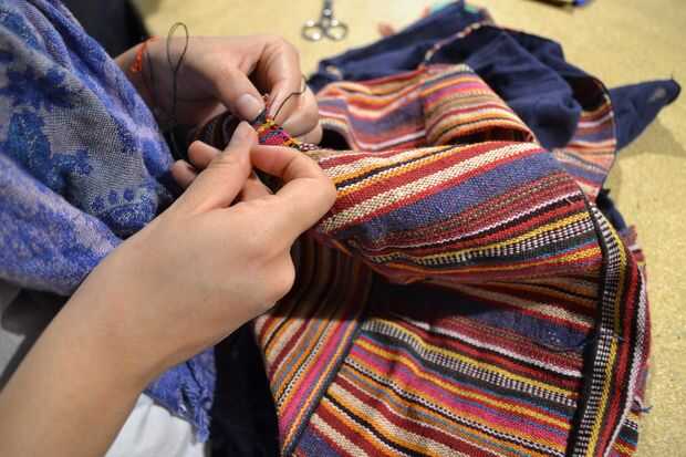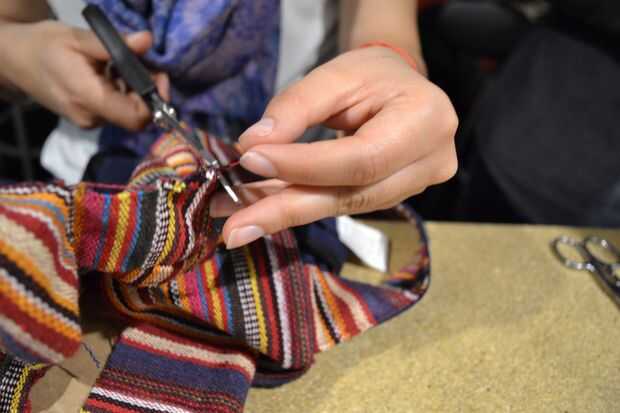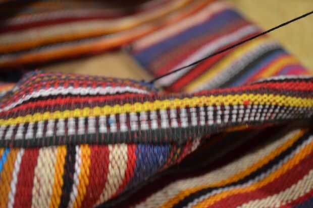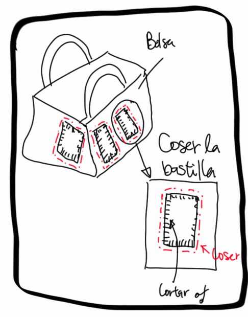 Antes de coser el panel, cortar el hilo sobrante de donde cortamos las ventanas de las celdas. Coser la bolsa donde se necesite y hacer nudos finales.