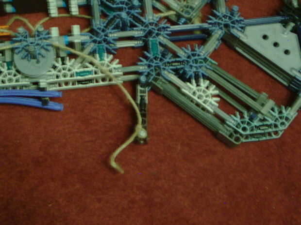 1 Ponga la cadena en la ram a través del orificio y luego tejer a través del agujero siguiente que no puede caber una varilla a través de y ty un nudo así que aterriza en el lugar donde poner las gomas en.