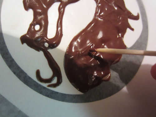 Una vez que hice todo el caramelo se derrite, me levantó una esquina del papel encerado y tomó un pico. De esta manera puedes ver alguna mancha que es demasiado delgadas y añade más dulces del derretimiento.