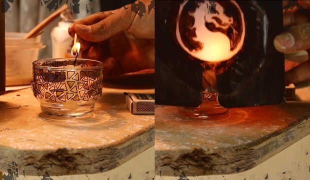 el Mortal Kombat logo creado con el caramelo se derrita.Candy melts son un buen medio ya que tienen una consistencia espesa, que ayuda en la creación de los puntos más complejos del diseño. También puedes crear logotipos con glaseado real en lugar de