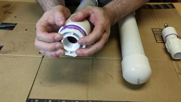 Usando el primer estándar de PVC y cemento de PVC, unir todos los componentes en el montaje final. Está muy bien preparar todas las piezas a la vez y dejar de lado, pero sólo unir dos componentes a la vez. Si pega por delante es muy probable que el pegamento se seque antes de llegar al siguiente componente.