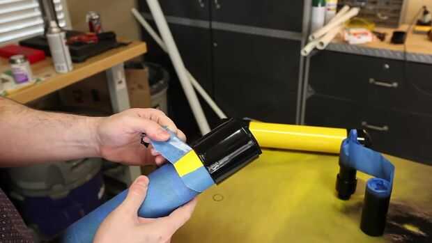 Pintar el mortero todo con un solo color de su elección y deje seque durante la noche. La próxima cinta del día de todas las secciones de tubería dejando sólo las tapas expuestas.