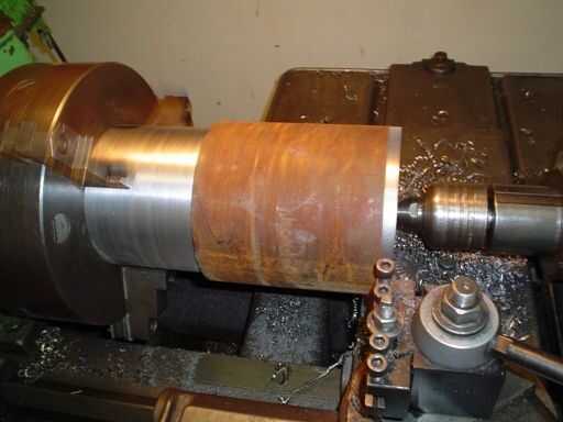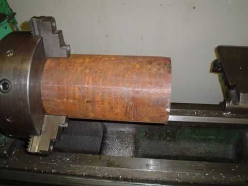 Enfrenté el extremo de la barra y centro lo había perforado. La barra entonces podría estar apoyada con un centro. Al final de la recámara del cañón era rugosa hacia fuera.