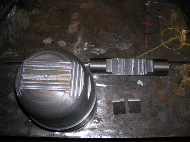 Con el muñón cortado a la medida de lo entonces fue fijada en la fresadora. El centro fue molido hasta la mitad de su espesor. Pasos se formaron para que coincida con la muesca correspondiente en el cañón.