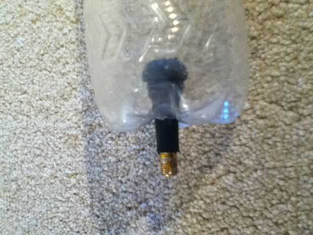 3) (opcional) usted puede poner sellador o pegamento caliente alrededor de la válvula de bicicleta para formar un "super confiable hermético sello"