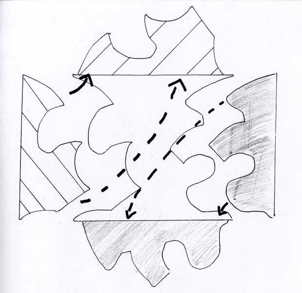 Este puzzle se utiliza para crear un guión gráfico con diferentes 3D impreso piezas del puzzle. Cada pieza se identifica únicamente una resistencia diferente. Esto se coloca en el tablero, que completa un circuito divisor de tensión y es reconocido p