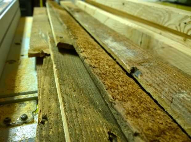 Ejecute su madera libre de clavos a través de la Sierra de mesa. Establecer dimensiones manejable anchura y profundidad, ten en cuenta que cuanto más gruesa tus franjas son, la más pesada será la pieza final y será el más difícil de colgar. He encontrado que 3/8"- 1/2" trabajado bien con el abeto de Douglas, no era tan delgada que las tiras se rompe, y no era tan grueso que la pieza terminada era demasiado pesada.
