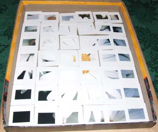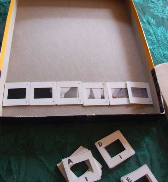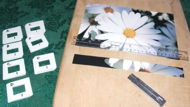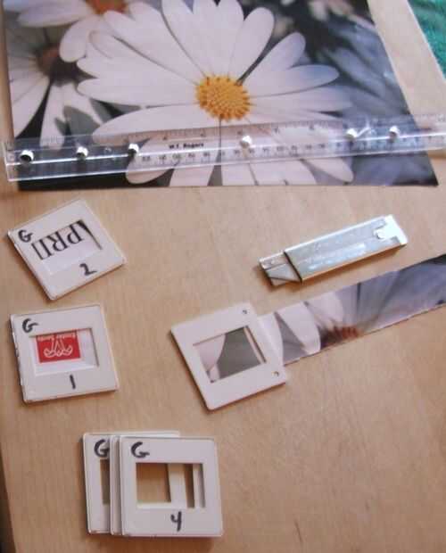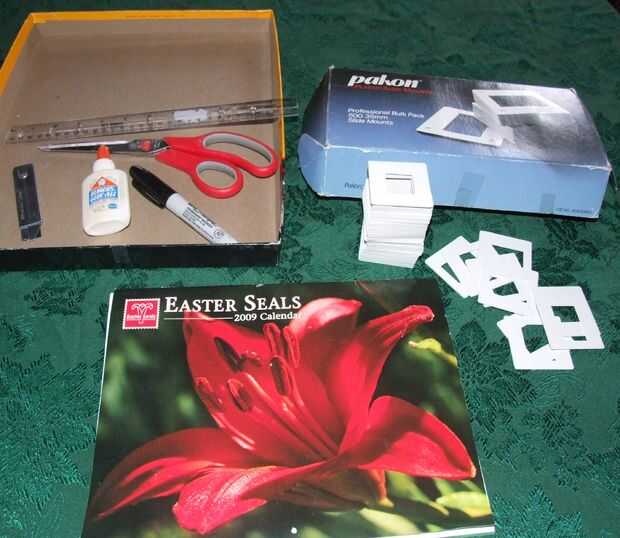 Si usted no tiene una vieja caja de diapositiva monta ahí, mira para algunos en una tienda de segunda mano. Cada poster de 12 "x 14" consiste en los titulares de diapositiva 36. Simplemente cortar una imagen grande en 36 pequeños rectángulos, colocar cada uno en un montaje de diapositivas y luego pegarlos en la cartulina en el mismo orden.