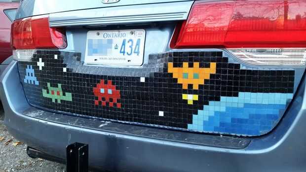 Esto es un gran "primer art car". Azulejos de mosaico de vidrio son barato, fácil de usar y durable.