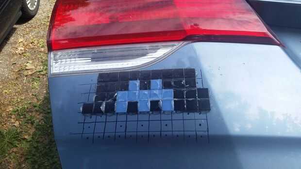 Utilice un marcador y una regla para marcar algunas líneas de nivel guía en la carrocería. Al principio dibujaba una cuadrícula completa para la primera sección pequeña, pero usted no necesita este número de líneas. Espaciamiento de las líneas de guía unos 10cm de separación es suficiente. También medí donde irían los elementos principales de la obra y marcadas las fronteras para estar seguro de que encajaría.