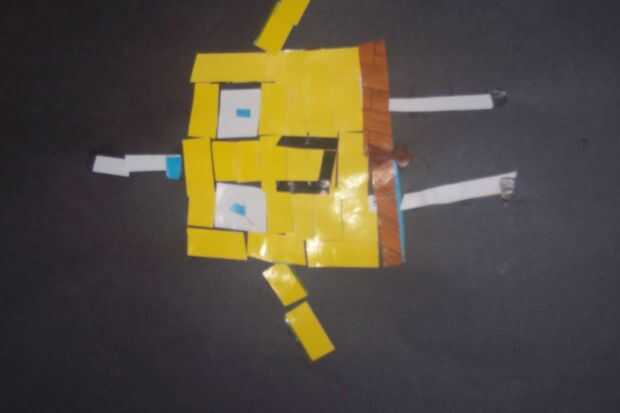 Este año mis sobrinas pidió un pinata de Spongebob Squarepants. El reto es hacer la forma rectangular usando papel maiche. Si usas cartulina como base para la piñata, bien puede ser demasiado difícil de romper, sobre todo entre los niños de edad pr