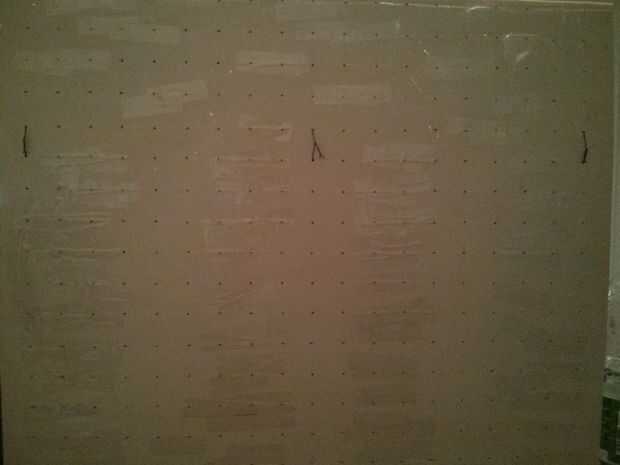 Colocar algo para colgar el mosaico en la pared. Usé alambre que puse a través de los agujeros antes de que cosí en los cubos.