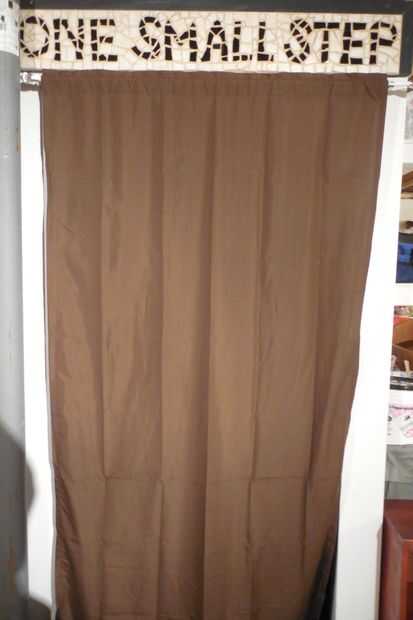 Se establecieron en el "Espacio" y se decidió por una forma barata para cubrir el área... negro y morado pintura, hecha a mano construido ins, vidrio reciclado y azulejo, un montón de pegamento, una alfombra, algunas almohadas y una cortina y barra. Costo total fue de unos $200.