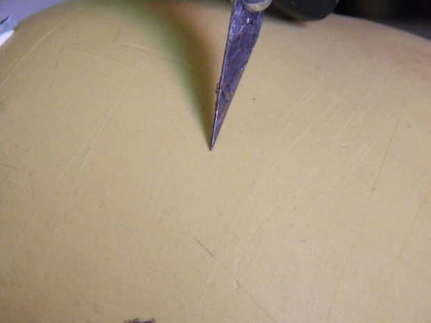 Primero que desea anotar su cráneo. Esta es la mejor hecha usando un cuchillo del exacto. Suavemente, rayar la superficie del cráneo para crear pequeños surcos en la cual se pegará la lechada. A continuación cortar pedazos de espejos con los cortadores de azulejos. Usted debe cortar en diferentes formas y tamaños.
