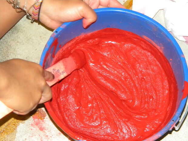 después de haber cubierto el cráneo todo en pedacitos de espejo, dejarlo sentarse y secar durante 24 horas. entonces es hora de lechada. después de elegir que te gusta de la lechada de color, mezcla unos puñados de lechada en un balde con agua. Asegúrese de que tener más lechada que agua en su mezcla. la lechada debe salir gruesos como guacamole. dejarlo reposar 5-10 minutos antes de aplicar