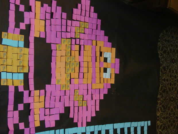 Trabajo en un centro sin fines de lucro con niños y buscando proyectos para trabajar con ellos que no cuestan una fortuna. Una cosa que me llamó la atención fue el mosaico de Post-It de Elvis que hace las rondas en línea un poco tiempo atrás. Parecía