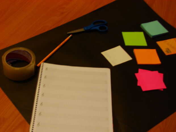 Para la versión que se muestra, cortamos papelitos cuadrados en cuartos, pero sólo los primeros dos son pegajosos. Así que si quieres hacer un mosaico del mismo tamaño, divida el número de papelitos por debajo de entre dos y hacer por consiguiente la ecuación.