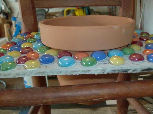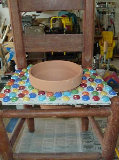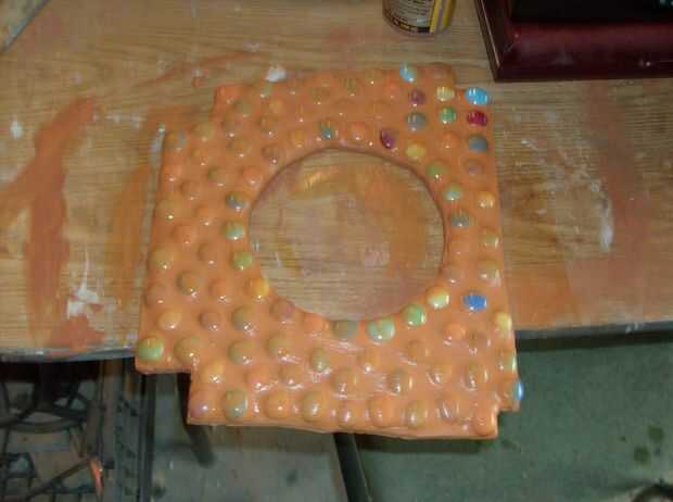 A continuación tomó mármoles decoración florales y había pegado a la Junta de mortero y permite que se sequen durante la noche. Puede utilizar cualquier baldosas de vidrio también. Al día siguiente tomé pre-mixed grout adhesivo y añade manchas de mortero de terracota para el color. Esto es donde se pone un poco desordenado.