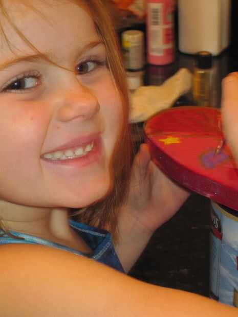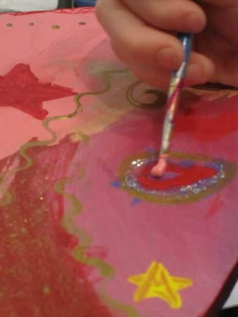 Dejo mis hijos venir para arriba con el arte. Hicieron cinco corazones en un lado representando a nuestra familia: mi esposo, yo y nuestras tres niñas.